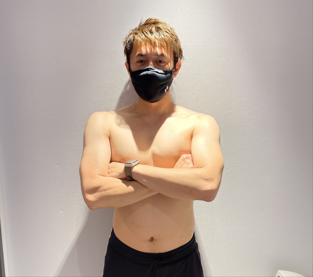 ご覧の通り腹筋も割れていませんし、ムチっとしています。