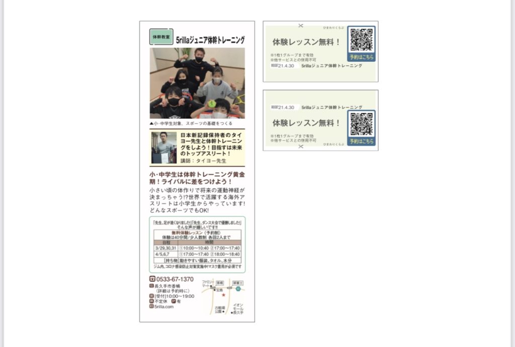 おかげさまで3月にオープンしたばかりですが、ジュニア体幹トレーニングのレッスンも枠が埋まってきました。